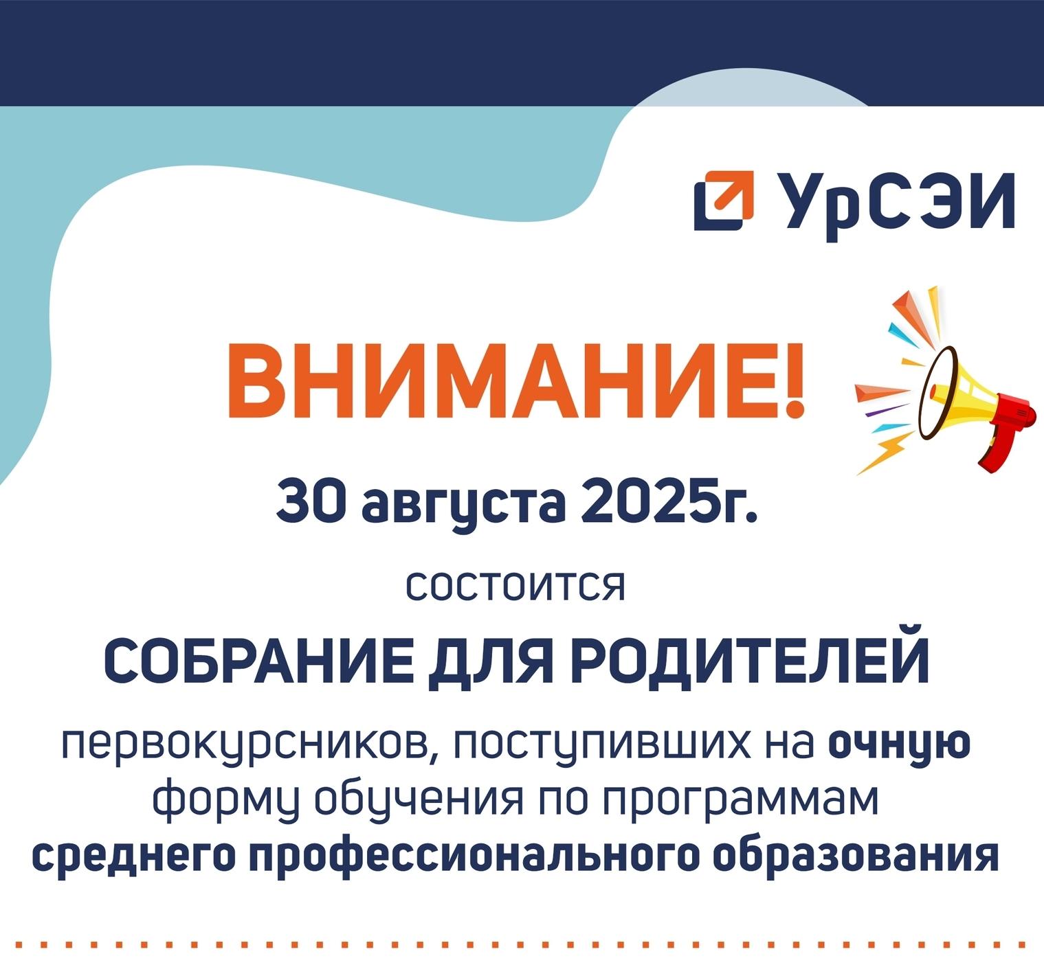 30 августа состоится СОБРАНИЕ ДЛЯ РОДИТЕЛЕЙ первокурсников, поступивших на ОЧНУЮ форму обучения по программам среднего профессионального образования.
